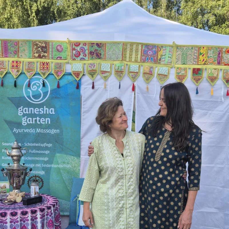 Wir sind Bettina und Anna, Ayurveda Massage Therapeutinnen aus der Umgebung Münchens und bieten dir während dem wunderschönen Yogafestival am Bodensee eine kleine Pause für Körper, Geist und Seele an.